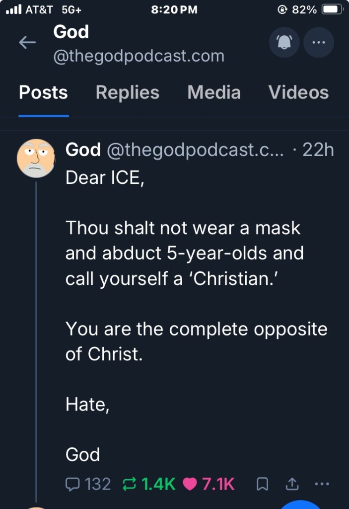 I ignore the bull shit for the most part. Yet I need balance. So part of my “going to sleep” is simply keeping on with The God Pod. I have a new notebook for books I enjoy reading and The God Pod I enjoy listening. I LOL with them. And I commiserate.